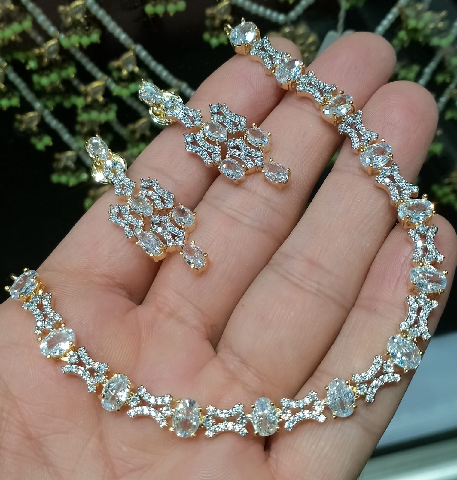 Zircon Stone Necklace with Earrings quantity